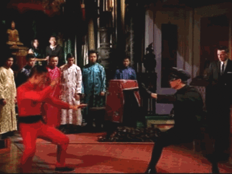 A dupla vai até o local e Kato acaba sendo jogado dentro de uma lata de lixo por um mascarado chamado Low Sing, interpretado por Mako. Os criminosos tentam incriminar Jimmy Kee. Depois disso, Kato procura Mary Chang, namorada de Jimmy. Em seguida, pede a Britt para encontrar Low Sing e exige lutar contra ele.
